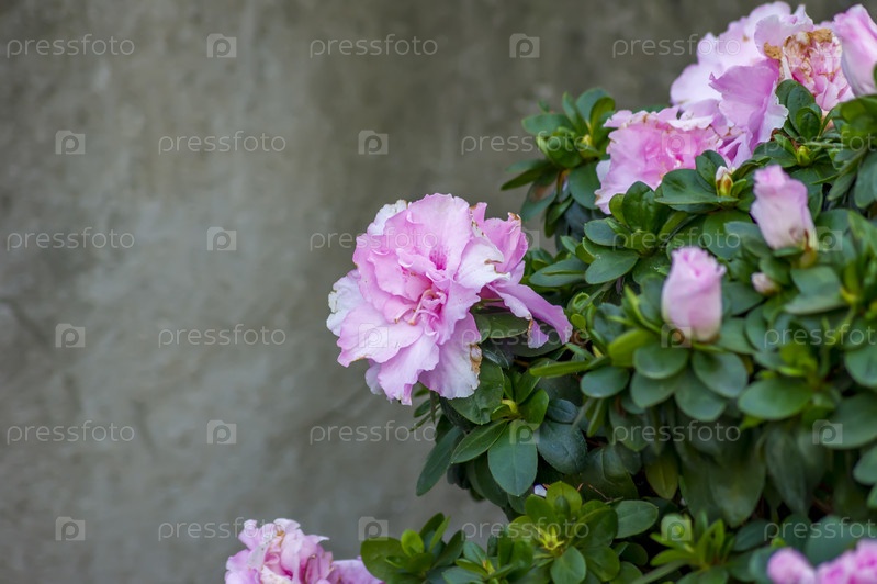 Цветы азалии на фоне серой стены
