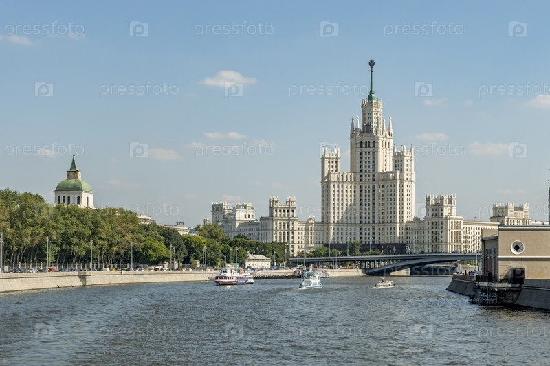 Москва, Россия - 10 августа 2017 г.: Панорамный вид на небоскреб Котельническая на фоне неба в Москве, Россия