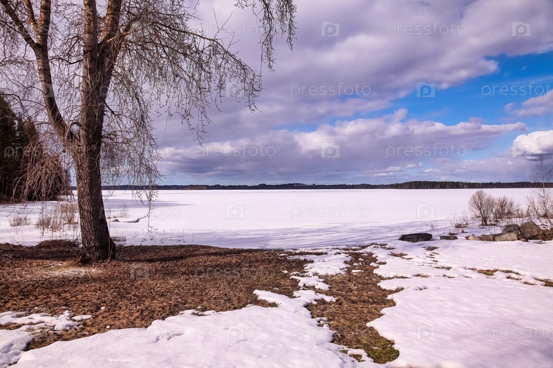 Большое изображение зимнего лесного ледяного озера