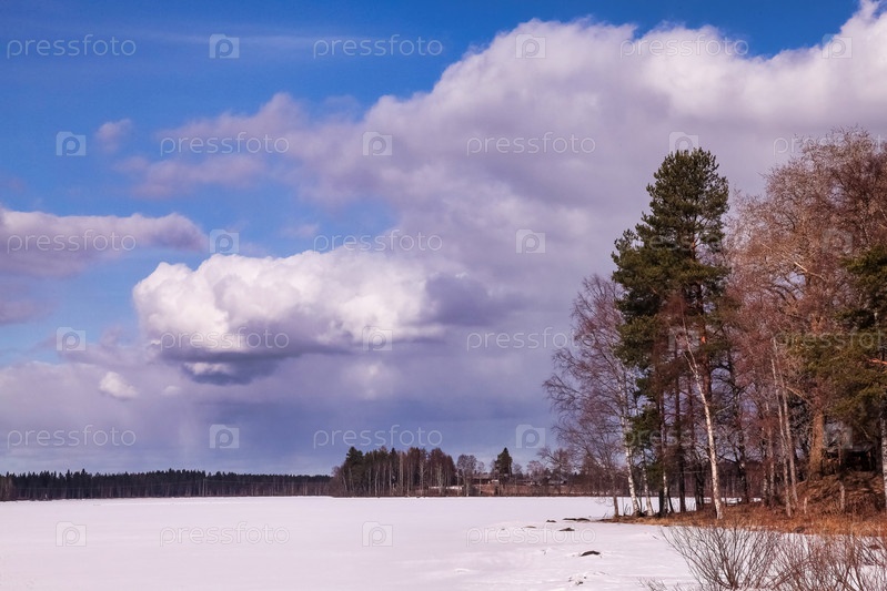 Большое изображение зимнего лесного ледяного озера