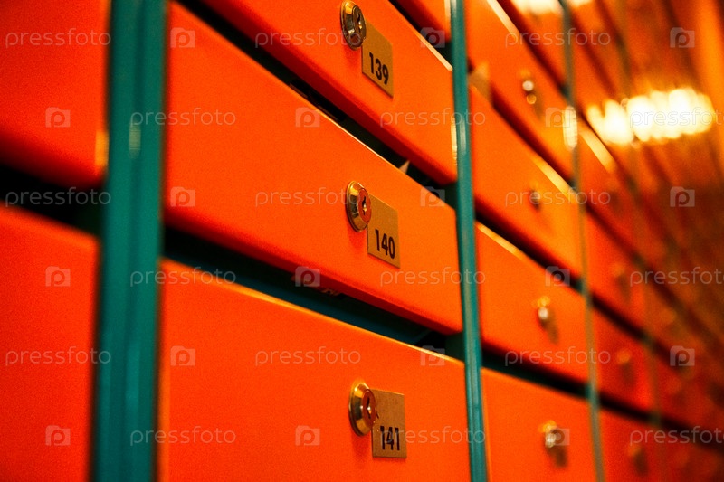 Оранжевые почтовые ящики в многоквартирном жилом доме