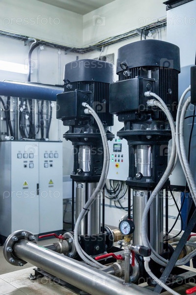 Промышленный интерьер водяной помпы, клапанов, манометров