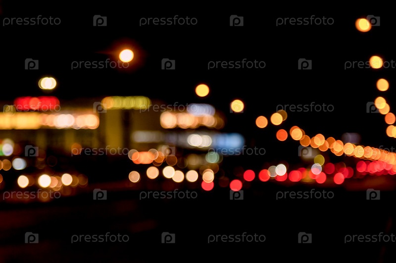 Абстрактный боке фон ночной улицы с автомобилями и уличными фонарями
