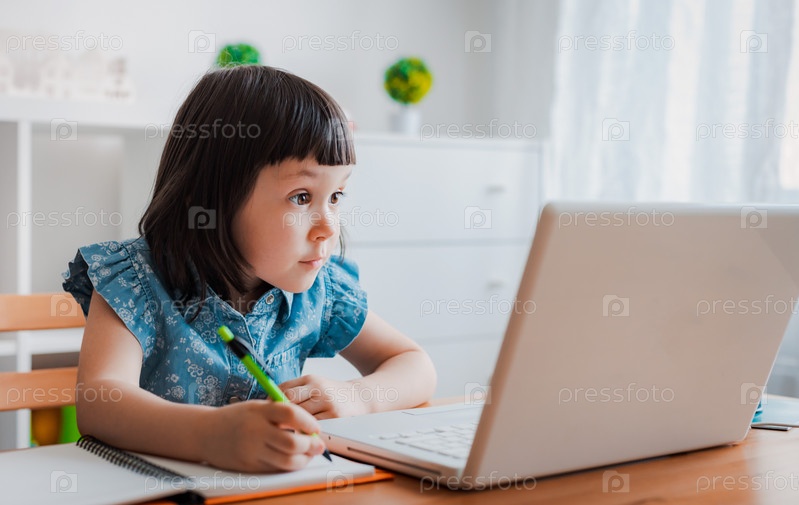 Дистанционное обучение онлайн образование. Школьник учится дома и делает домашнее задание. Домашнее дистанционное обучение