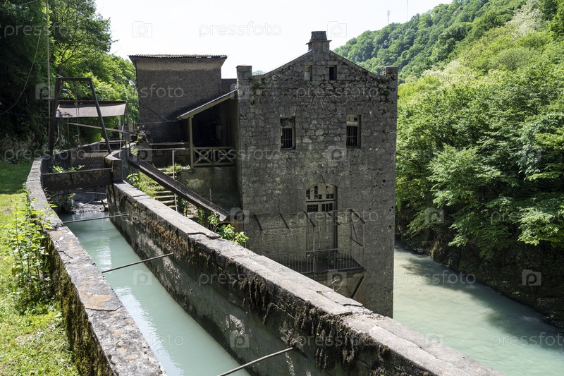Здание Сухумской ГЭС в Республике Абхазия. Ясный солнечный день 18 мая 2021 года