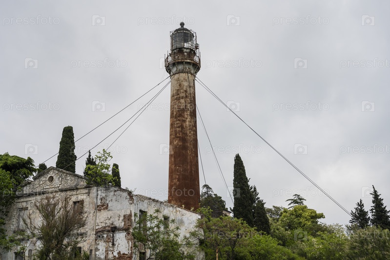 Старый маяк в городе Сухум в Республике Абхазия. Пасмурный день 17 мая 2021 года