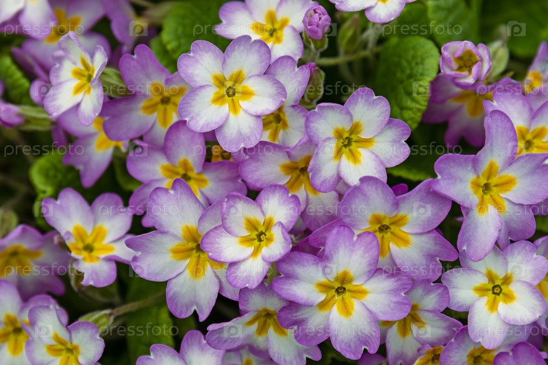 Многолетняя примула или первоцвет в весеннем саду. Весенние цветы первоцвета. Красивые цветы первоцвета в саду. Фон природы