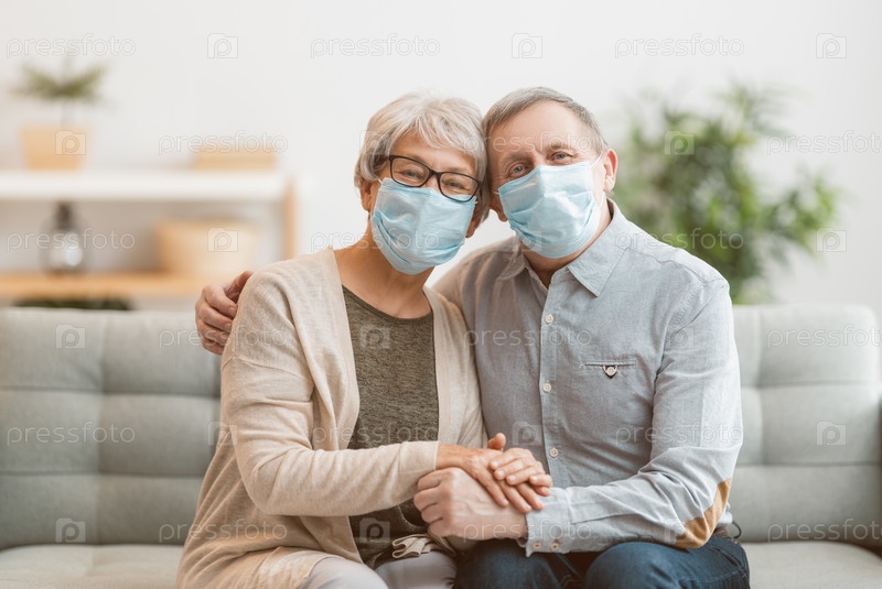 Пожилая пара в масках