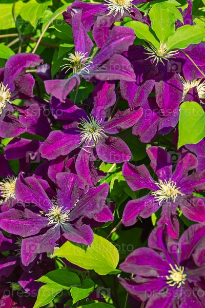Клематис Ville de Leon с розовыми цветами, красивое садовое растение с большими великолепными цветами, цветущие летом