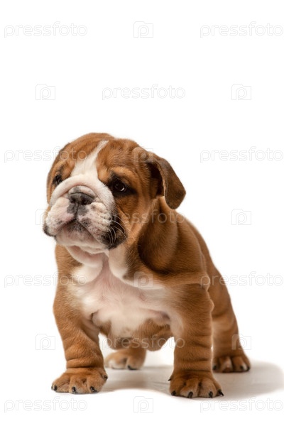 Симпатичный щенок английского бульдога на белом фоне