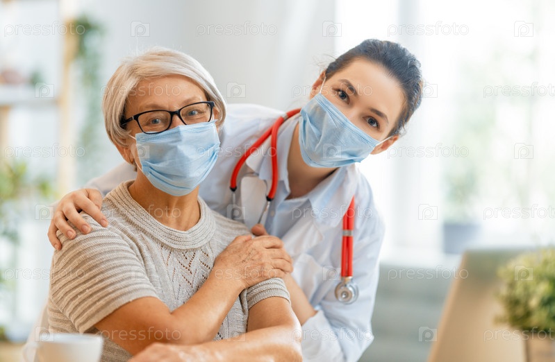 Доктор и пожилая женщина в масках
