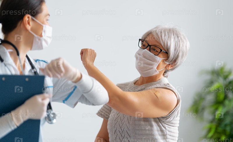 Пожилая женщина после прививки