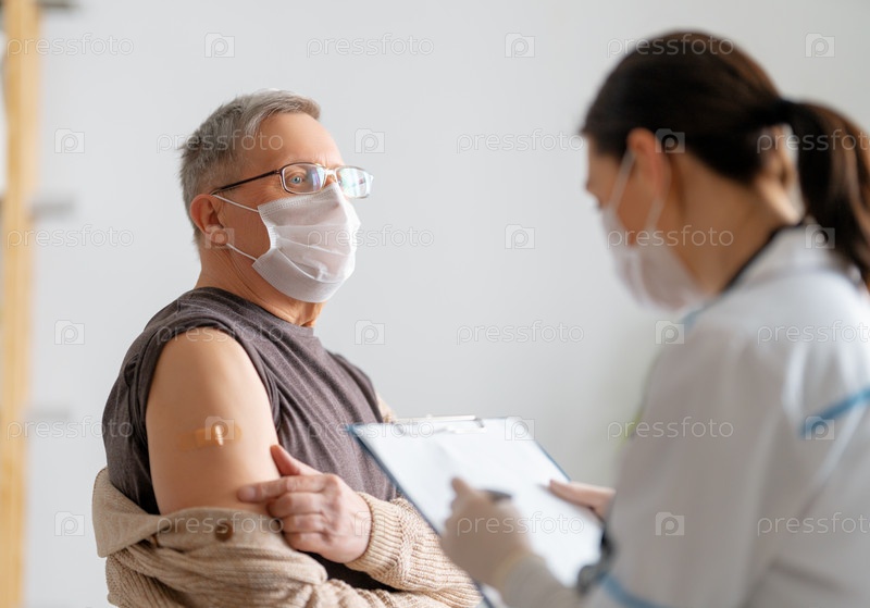 Пожилой мужчина после прививки