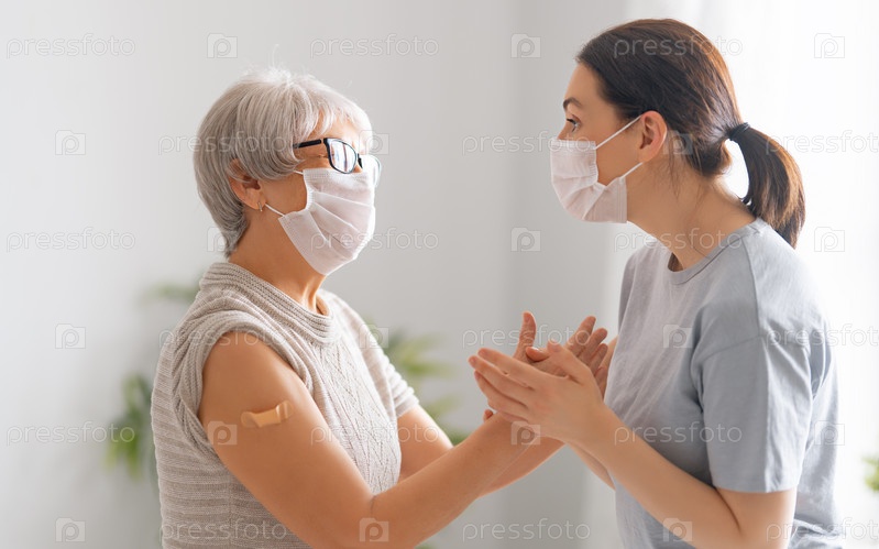 Пожилая женщина после прививки