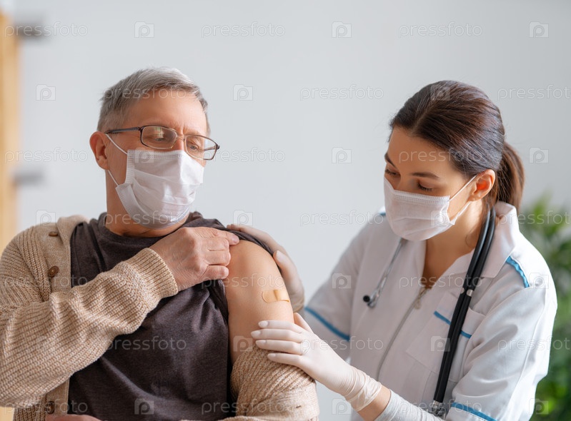 Пожилой мужчина после прививки