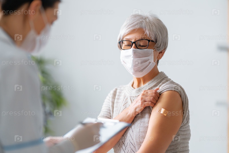 Пожилая женщина после прививки