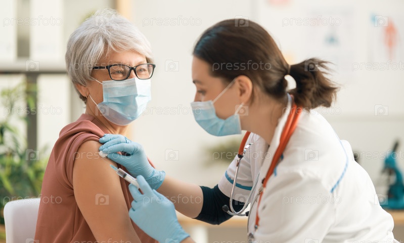 Доктор вакцинирует пожилую женщину