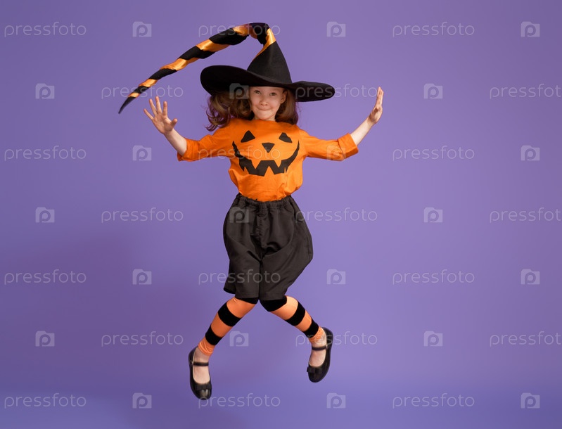 Маленькая ведьма на фиолетовом фоне