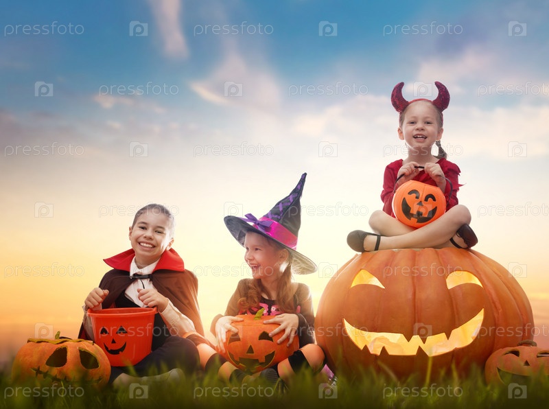 Дети в карнавальных костюмах на Хэллоуин