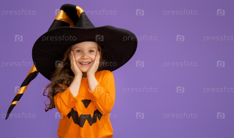 Маленькая ведьма на фиолетовом фоне
