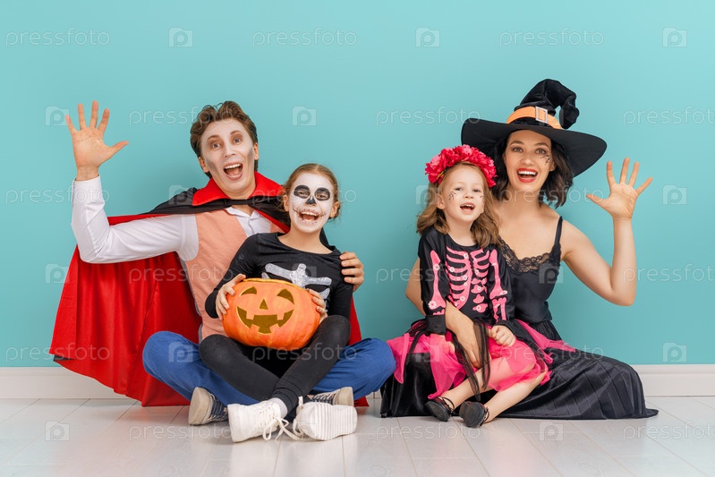 Счастливая семья празднует Хэллоуин
