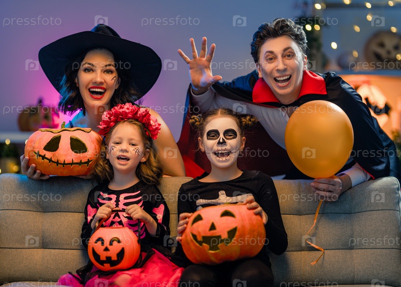 Счастливая семья празднует Хэллоуин