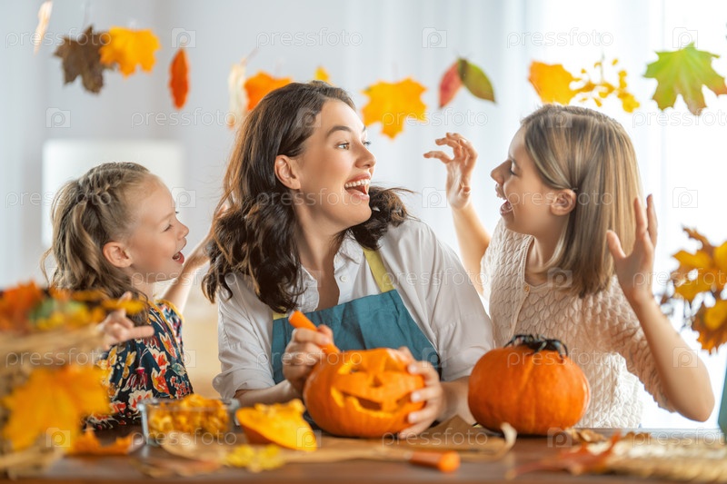 Семья готовится к Хэллоуину