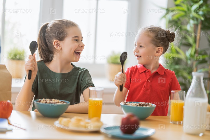 Счастливые дети завтракают