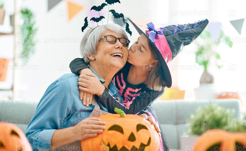 Семья празднует Хэллоуин