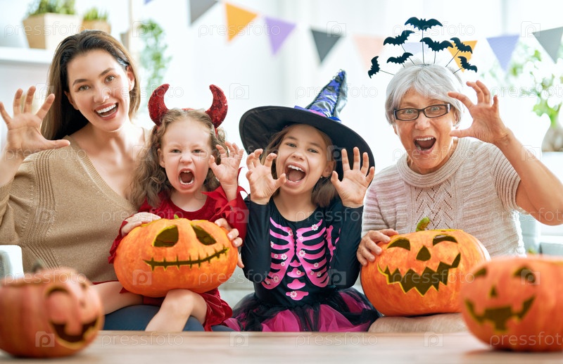 Семья празднует Хэллоуин