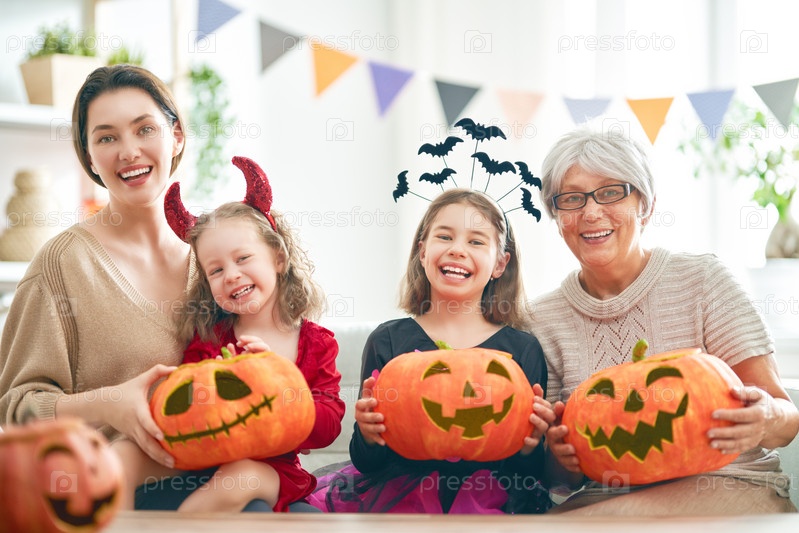 Семья празднует Хэллоуин