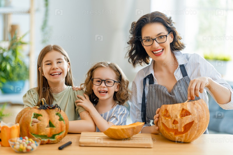 Счастливая семья готовится к Хэллоуину