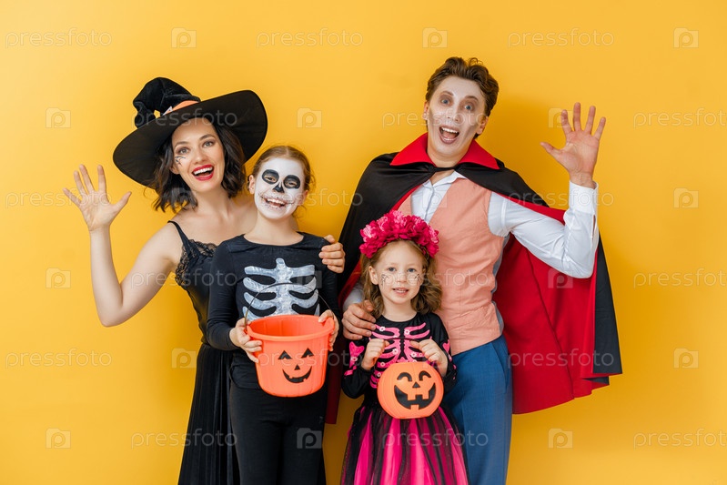 Счастливая семья празднует Хэллоуин