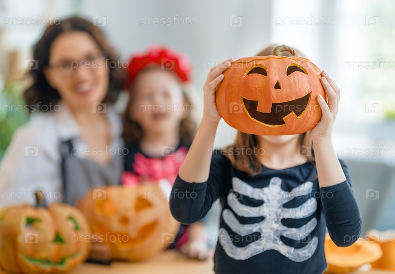Счастливая семья готовится к Хэллоуину