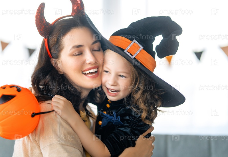 Счастливая семья празднует Хэллоуин