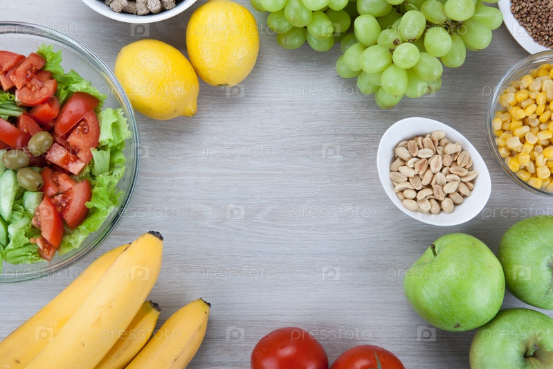 План диеты со свежими овощами и фруктами на столе