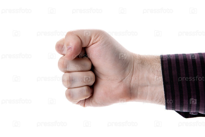 Кулак рука человека на белом фоне концепции