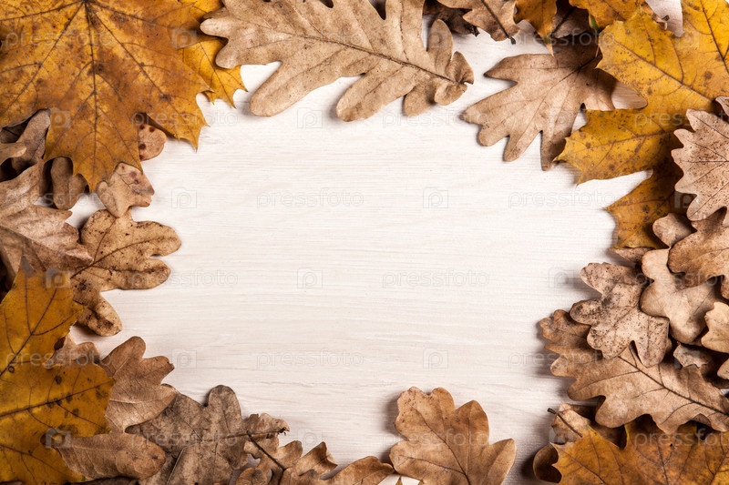 Листва осенних листьев на деревянном фоне в виде рамки
