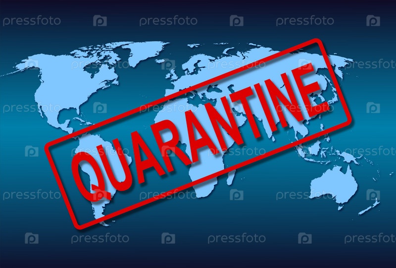 Синяя карта мира с красной надписью карантин в качестве штампа
