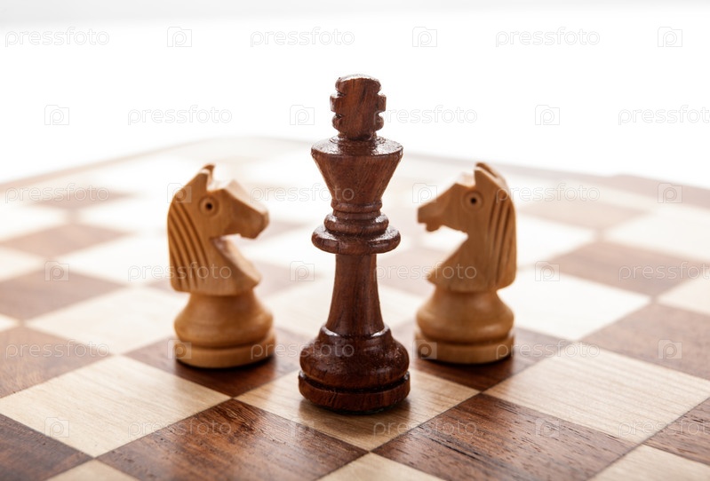 Черный шахматный король между белыми конями