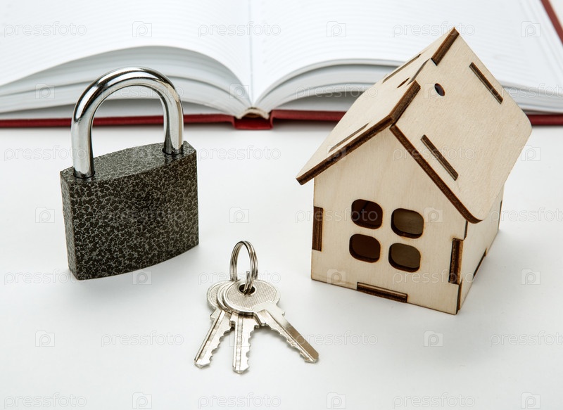Деревянный миниатюрный дом с ключами и замком Домашняя безопасность