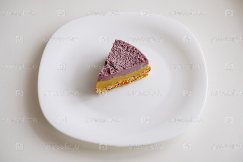 Сырой веганский черничный чизкейк на белой тарелке
