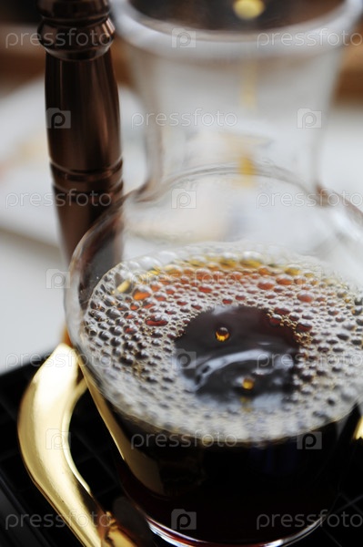 Свежезаваренный черный кофе крупным планом в стеклянном графине. Концепция третьей волны