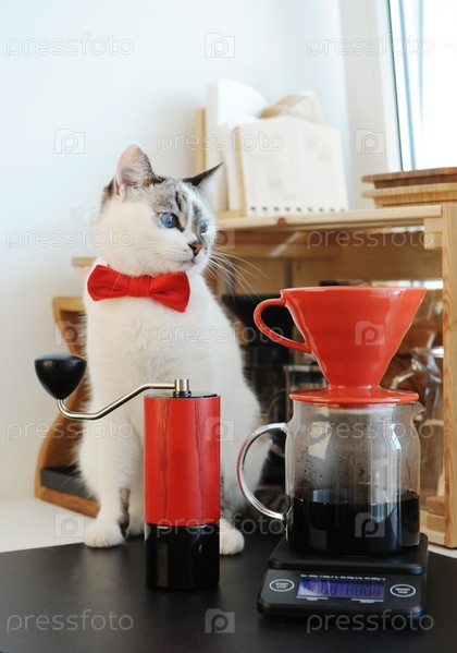Процесс заваривания кофе. Красная керамическая капельница крупным планом