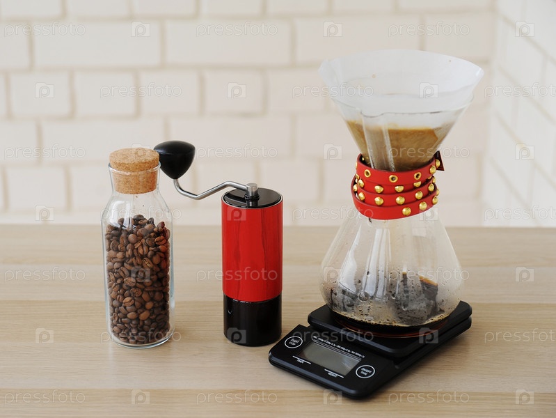 Альтернатива ручному завариванию кофе. Капельный порционный фильтр. Красная кофемолка. Электронные весы