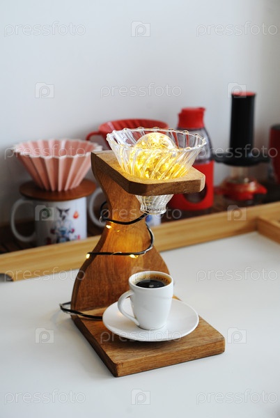 Креативная художественная лампа ручной работы из капельной кофейной станции, капельницы v60 и светильников Чашка черного кофе в нижней доске