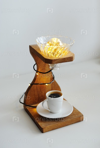 Креативная художественная лампа ручной работы из капельной кофейной станции, капельницы v60 и светильников Чашка черного кофе в нижней доске