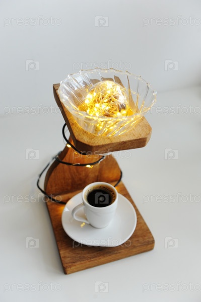 Креативная художественная лампа ручной работы из капельной кофейной станции, капельницы v60 и светильников Чашка черного кофе в нижней доске