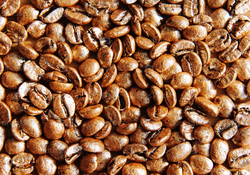 Кофейные зерна окрашены в золотисто-перламутровую краску. Текстура, фон