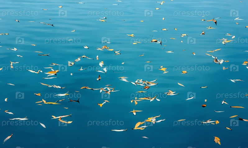 Опавшие осенние листья на воде. Осенний природный фон